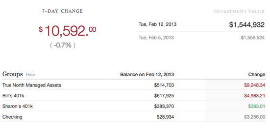 Context: By organizing information around a complete view of a client’s assets your summary conveys context. In fact all the context of the client’s situation. Swings in value are viewed from the perspective of their complete portfolio. In other words, any swings in the value of a single account are viewed proportionately to the total.