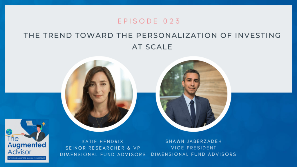 Katie Hendrix and Shawn Jaberzadeh talk about how historically, it has been incredibly labor intensive for financial advisors to deliver bespoke investment management to their clients. Until recently, even large companies like Dimensional Fund Advisors (DFA) required a minimum account balance of $20 million for their separate managed account (SMA) offering.